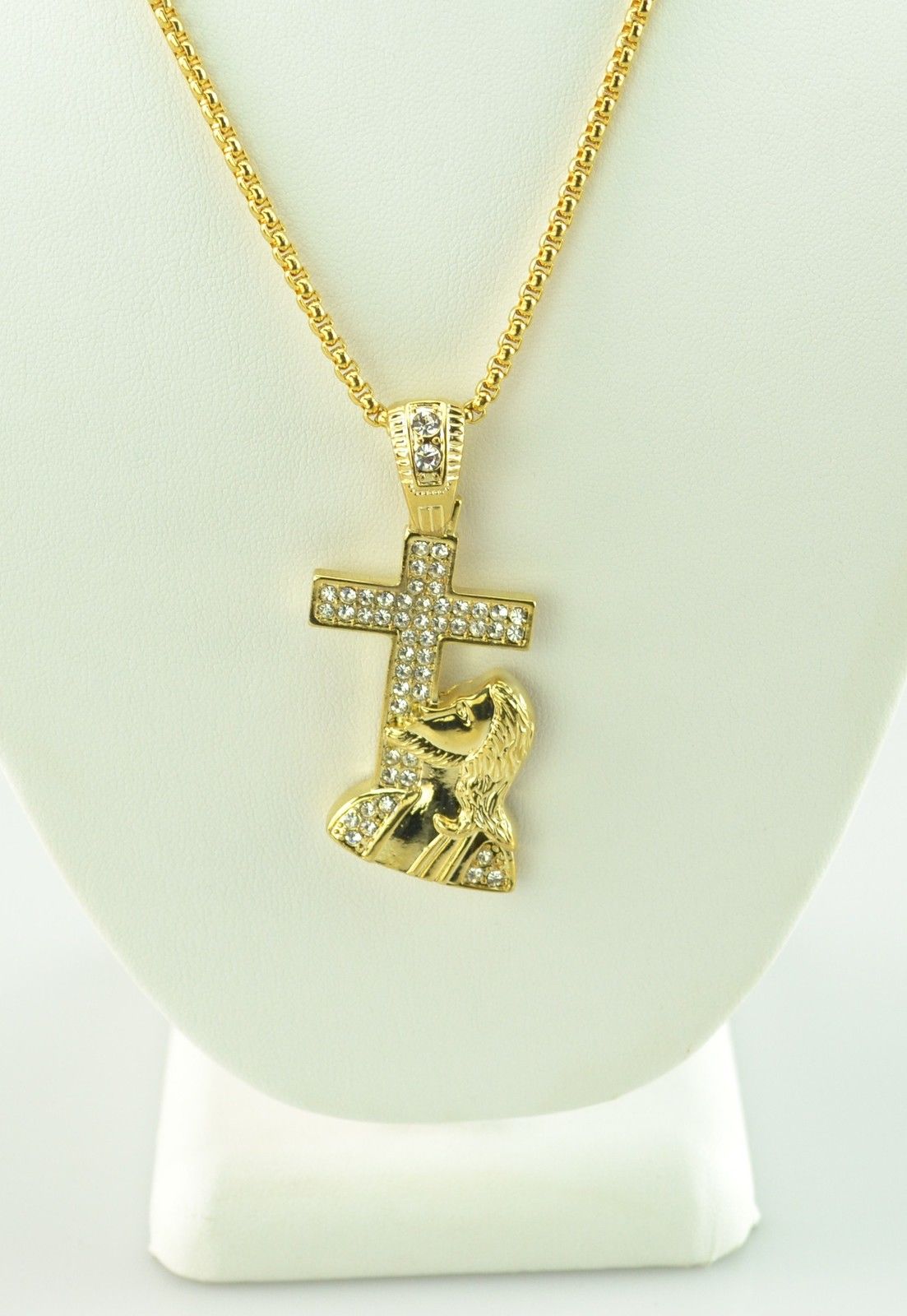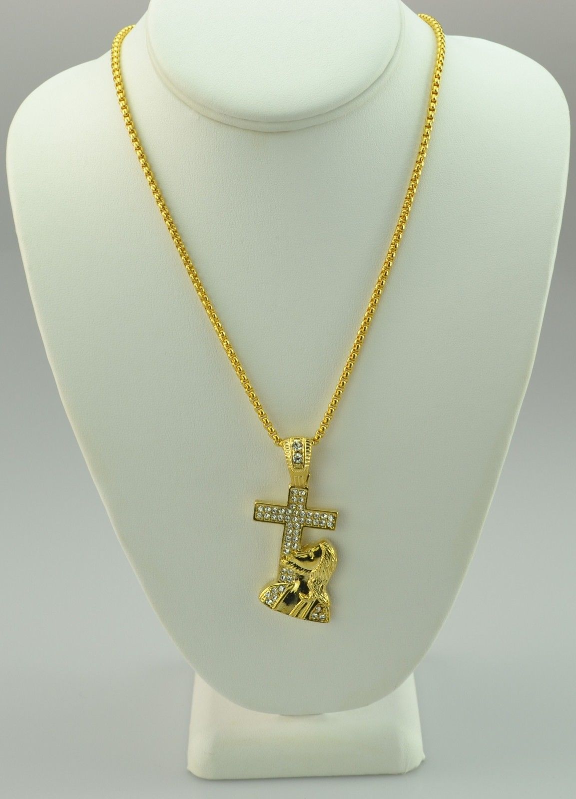 Cross Pendant With Stainless Steel With Chain Necklace Link Chain 24"