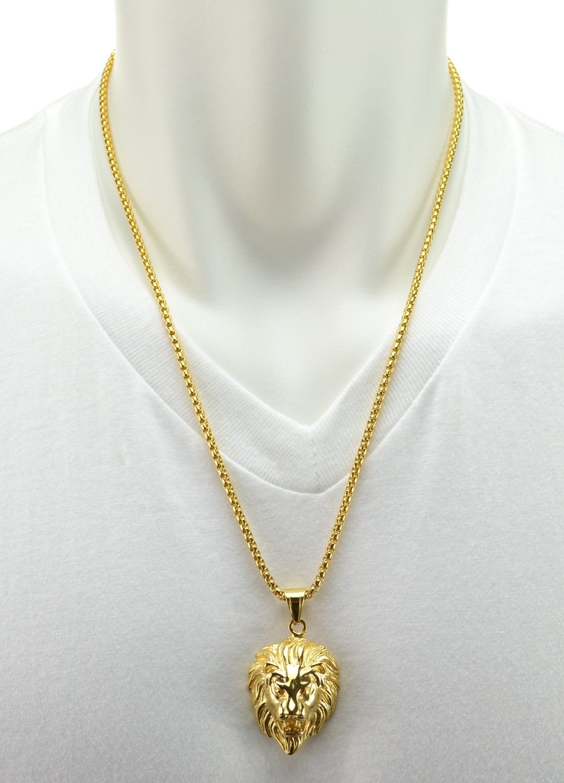 Lion Head Pendant With Stainless Steel Cuban Link Chain Necklace 30in