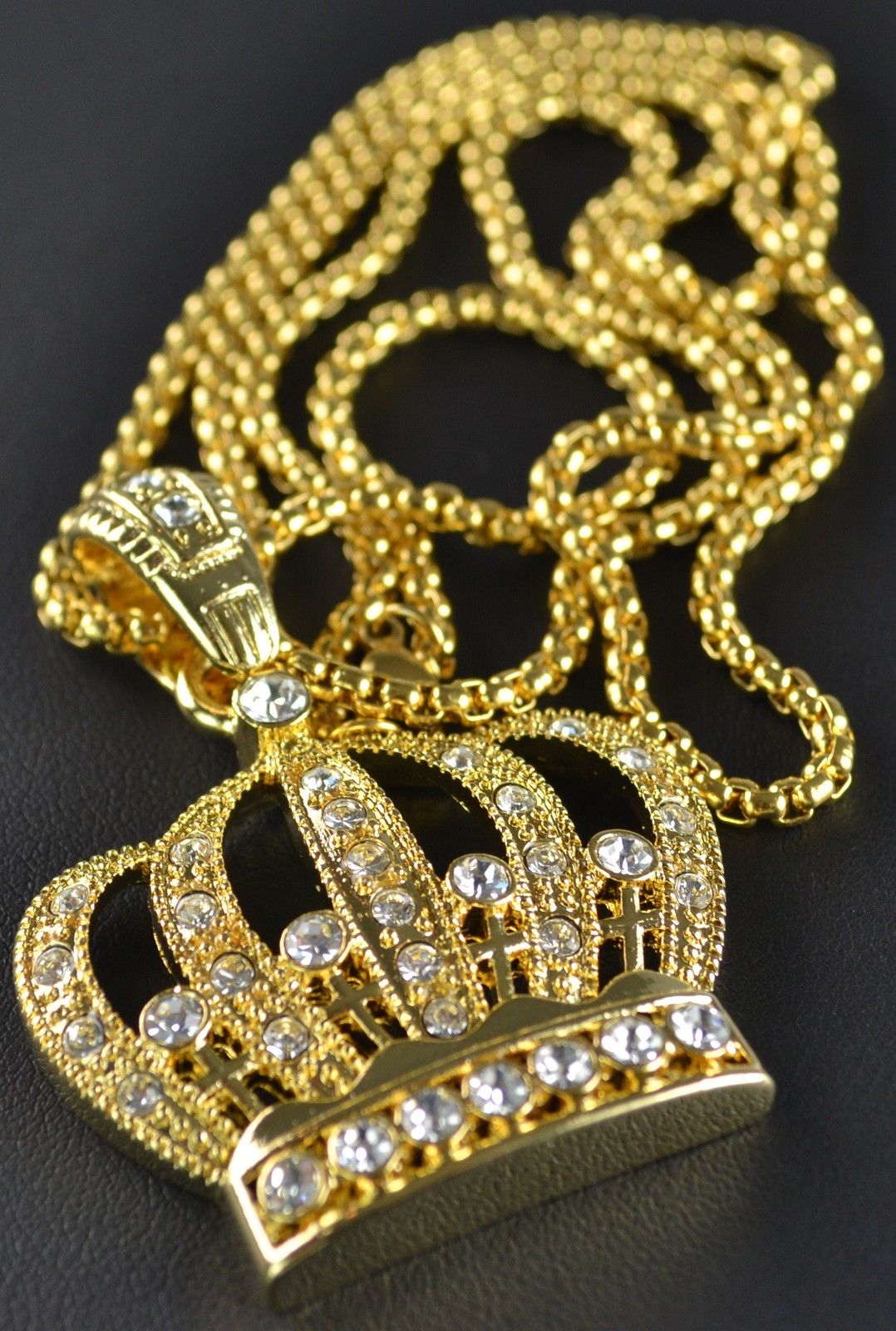 14k Yellow Gold Plated Crown Pendant With Chain Necklace